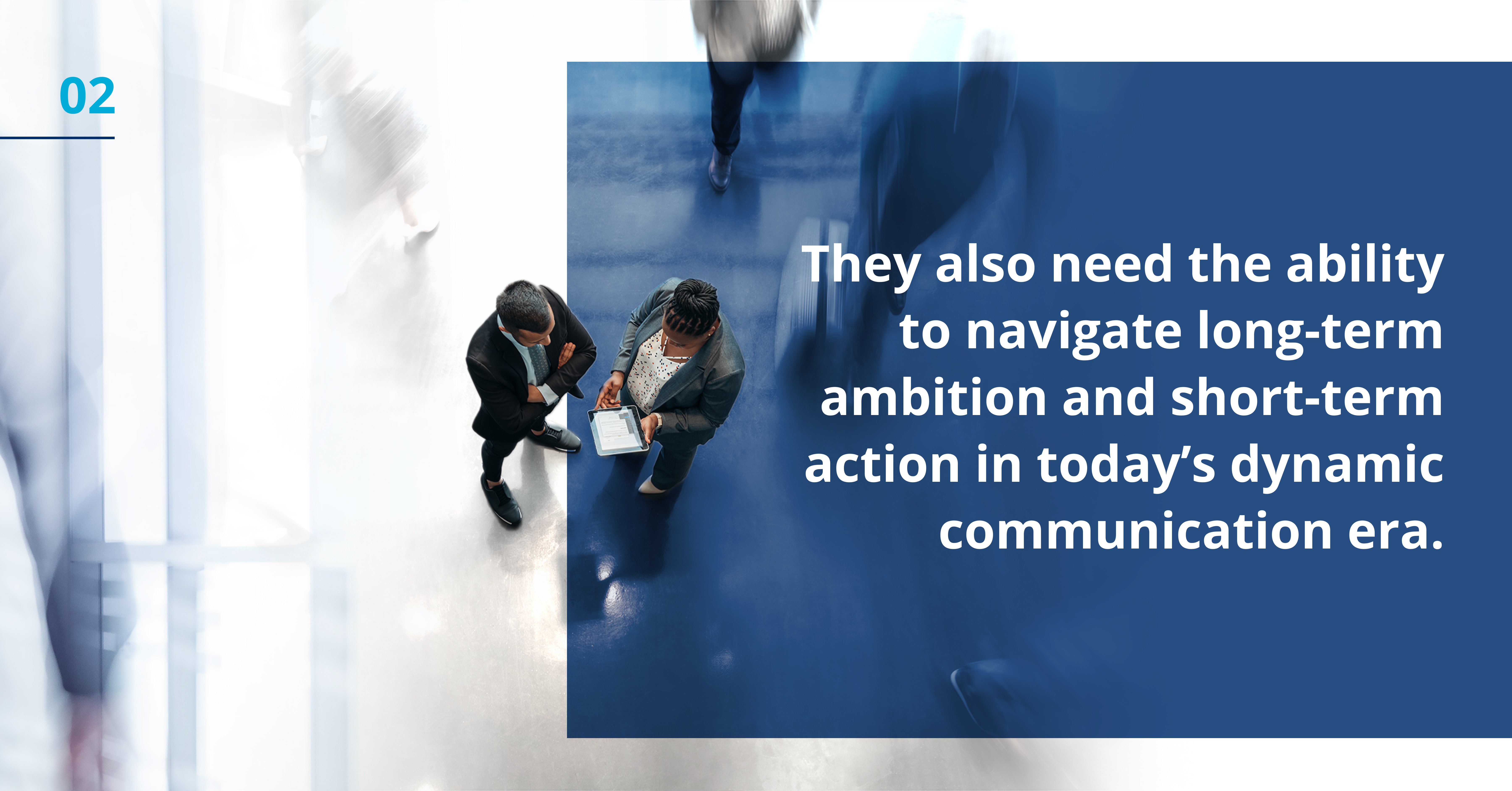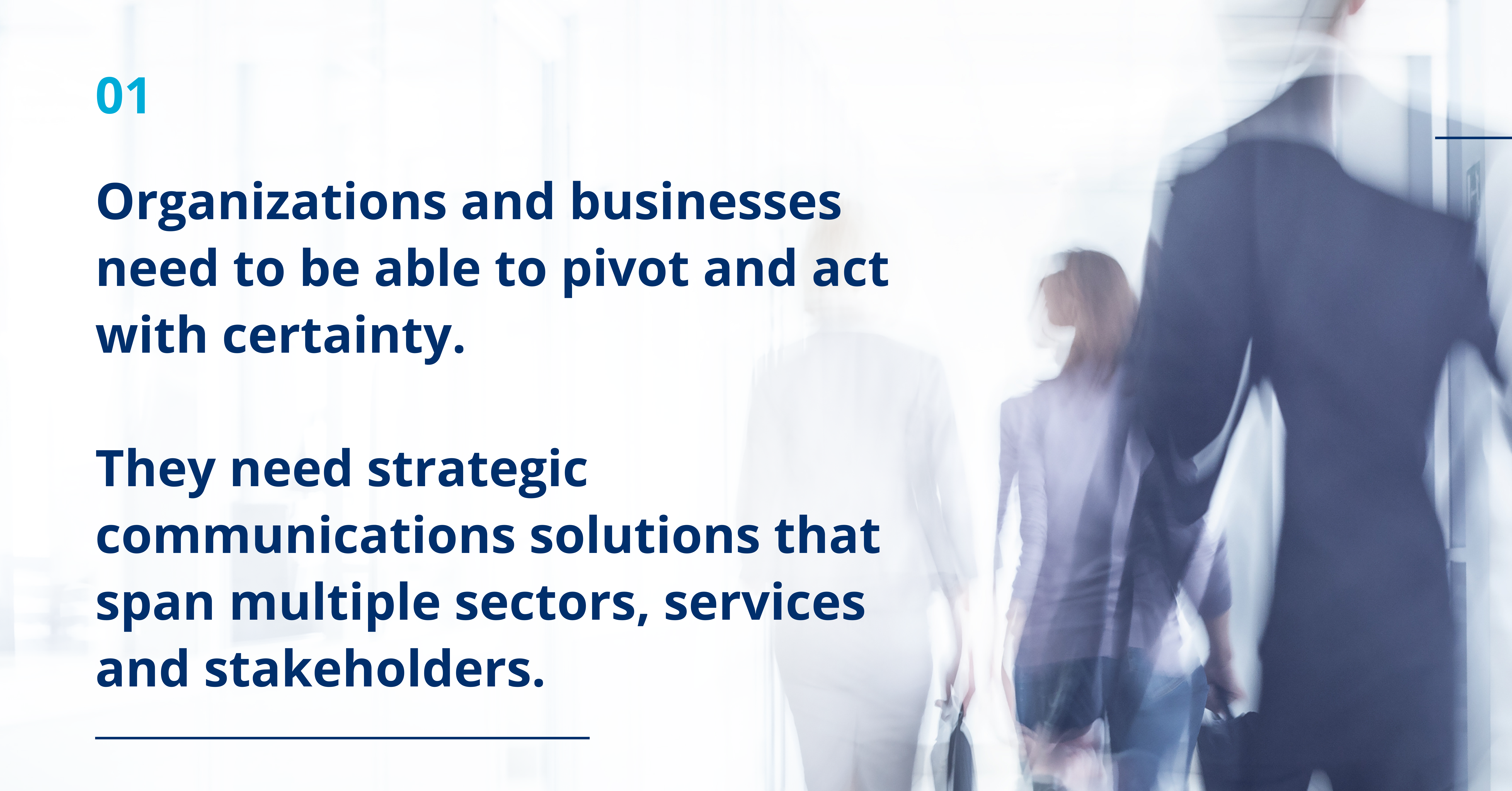 We bring our integrated capabilities to solve short-term communication challenges and then leverage the learnings and successes to generate momentum towards your desired future.
