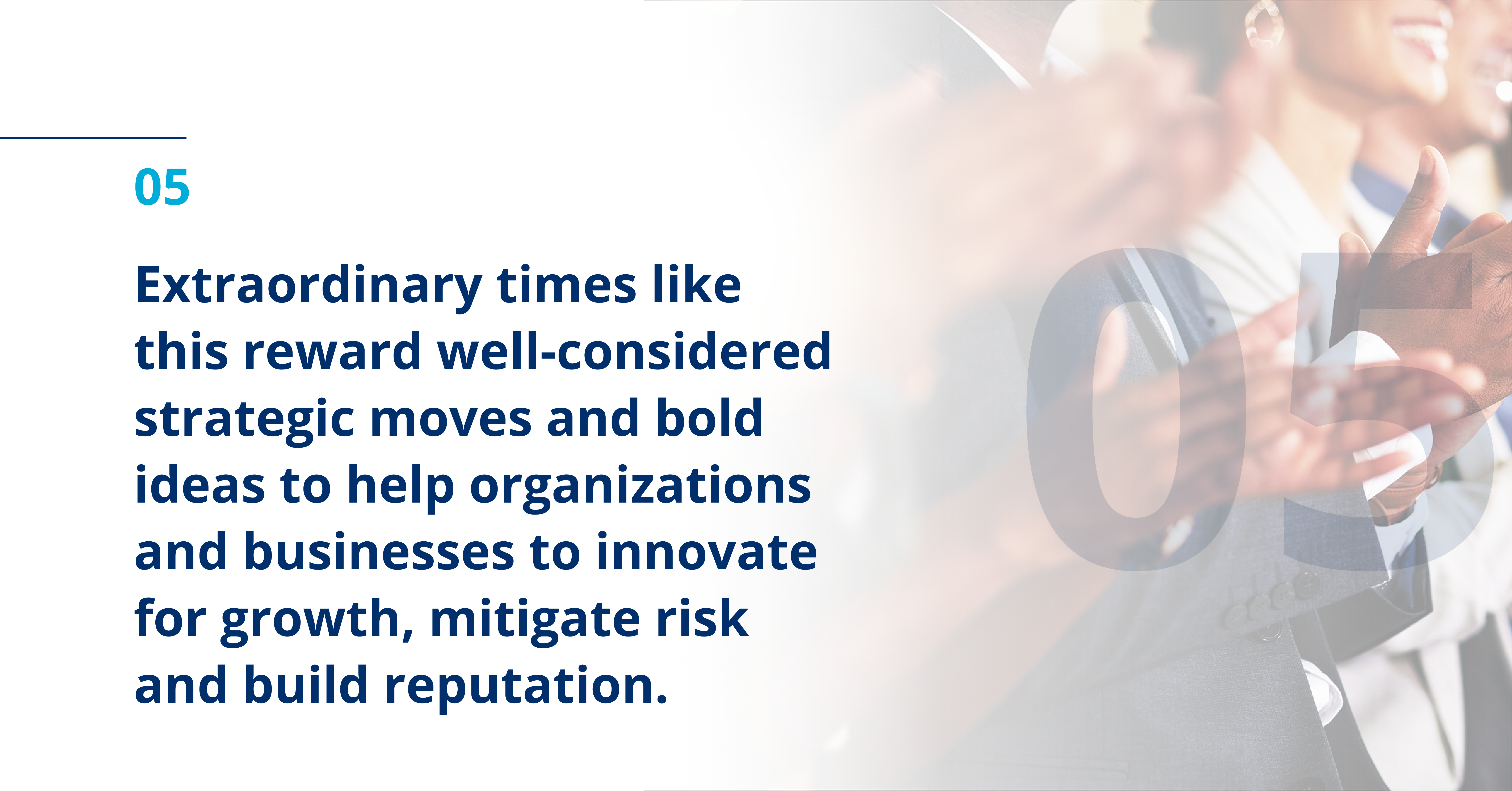 From idea to impact, we integrate capabilities in strategy, media and creative so clients can navigate the ever-changing landscape of managing risk, building reputation and creating value with strategic communications.