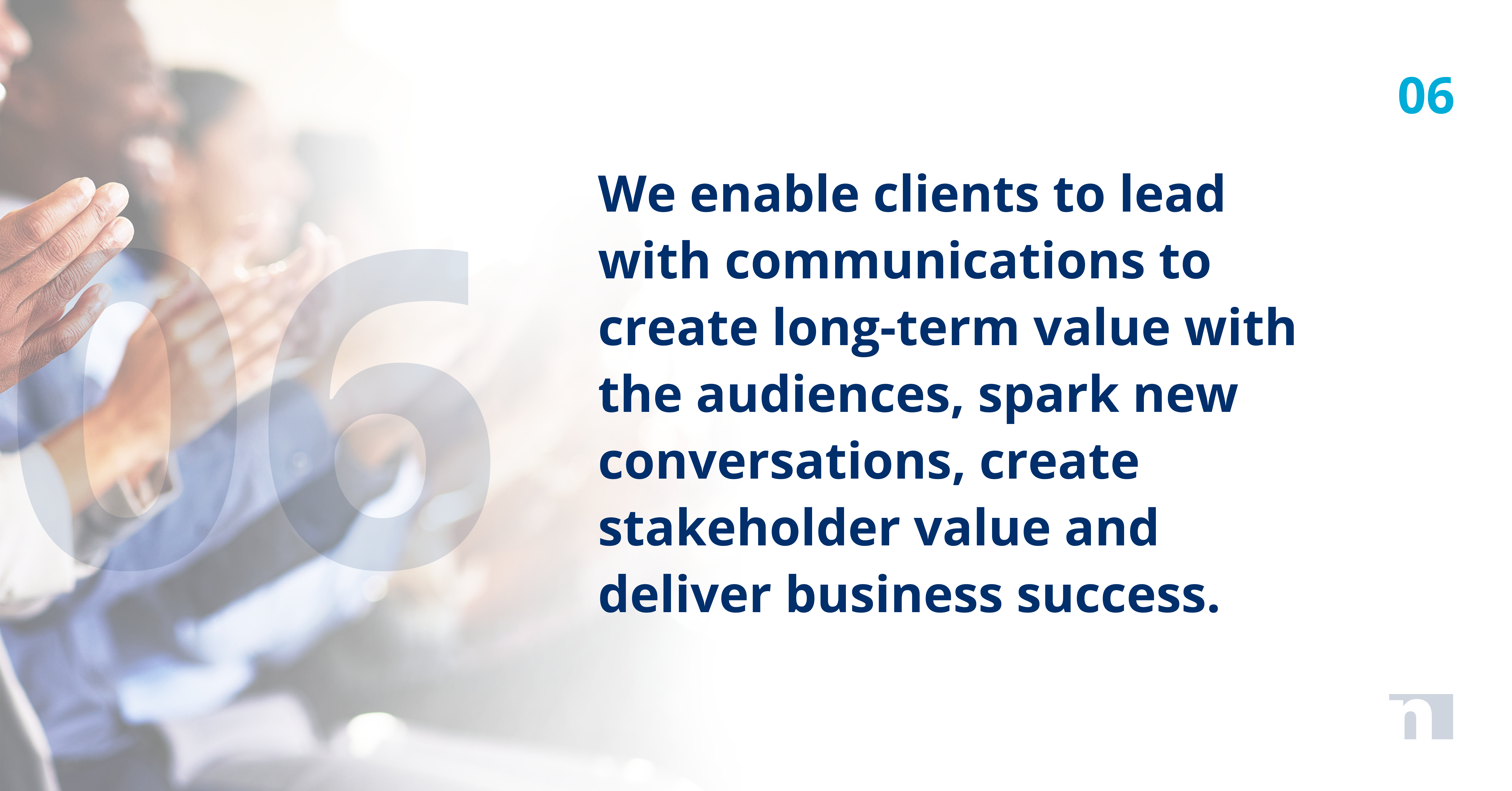 Planning for impact. From uncovering crucial insights at the onset to finding new opportunities or addressing emerging risks, we ensure communication strategies are aligned to business objectives and clearly mapped out to deliver transformative results shareholders, employees, customers, communities and the society we serve.